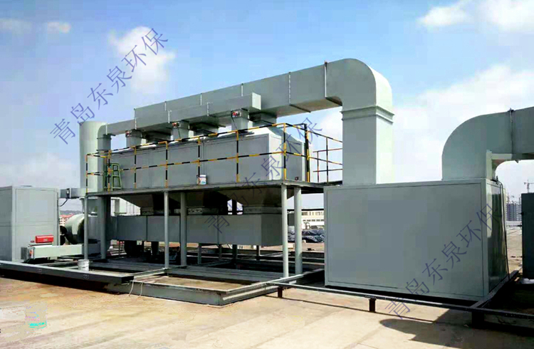 漆霧廢氣催化燃燒設(shè)備針對中低濃度廢氣,利用吸附-催化燃燒工藝進行回收凈化的過程如下:有機廢氣經(jīng)去除粉塵等預(yù)處理后,進入裝有高效吸附劑的吸附器,空氣得到凈化。隨著吸附的進行,吸附劑逐漸達到飽和,在與高溫?zé)峥諝獾慕佑|過程中,有機廢氣被脫附下來形成高度濃縮的廢氣,同時吸附床得到再生。再生后的吸附床又可進行吸附作業(yè)。經(jīng)脫附形成的濃縮廢氣進入催化燃燒器,生成二氧化碳和水達標(biāo)排放。